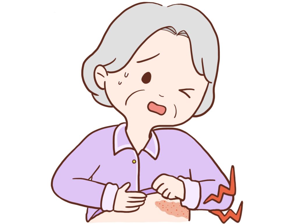 最初は皮膚に痛みが出て、数日たつと皮膚にブツブツができて体の左右のどちらかに帯状に、胸から背中に広がることが多いですが、頭や足腰にも起こります。ここで放置して、悪くなってから病院にかかると、神経痛が後遺症として残る事が多いので早めに受診しましょう。抗ウィルス剤をのんで、ブツブツにはコンベックなどのステロイドの入っていない炎症を抑える薬を塗りましょう。ブツブツが治まってきても痛みが残る場合は、リリカやタリージェなどの神経痛の薬を使いましょう。帯状疱疹後の神経痛は20-30%と言われ、1年以上続くこともありますので問題です。水疱瘡と違って、帯状疱疹による免疫獲得は不十分で、再度の感染も5-10%に起こりますのでワクチンの接種が推奨されます。
